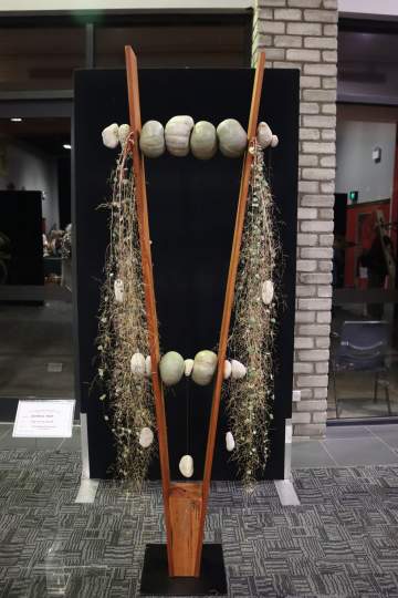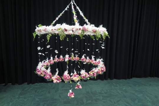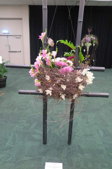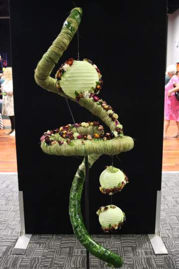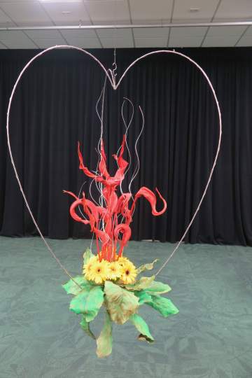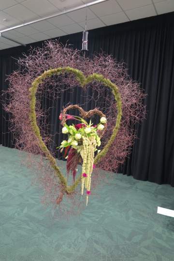 The title of the triennial Designer of the Year Competition 2019 was ‘The Heart of the Matter is ...’ with competitors invited to subtitle their design with words of their own choice. The twelve designs were suspended from the ceiling and a weight restriction of 10kgs was imposed. Winner, Barb Higgins, represented the Nelson Marlborough Area.