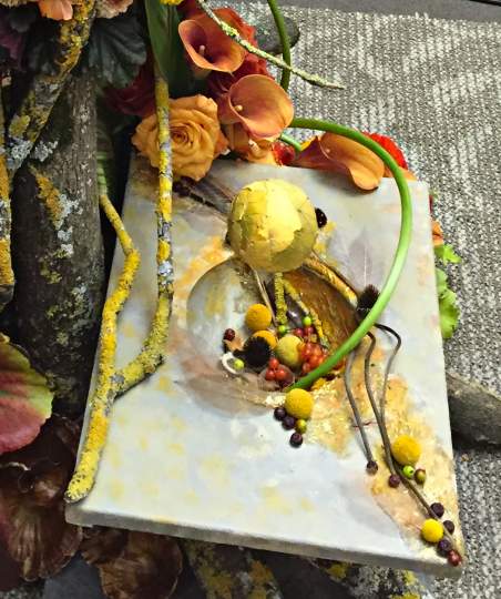 The 2016 DOY design schedule set the competitors a challenge - requiring a canvas or canvases to be incorporated in the floor design to interpret the title "The Autumn Palette Stirs The Soul".