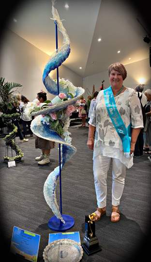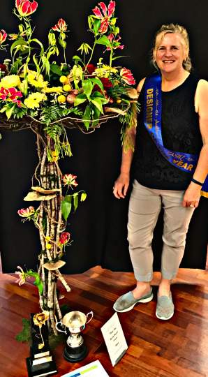 Designer of the Year was won by Maria Baxter with the title of 'Enchanted Forest'. The Senior title was 'The Force Awakens' and was won by Marianne Gibson. 'Fairy Tales', a cascade design for the Intermediate Class, was won by Adrienne Bell, and the Junior Class, titled 'Once upon a time' was won by Judy Marshall.