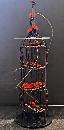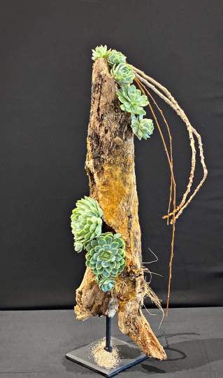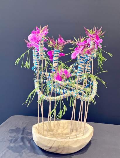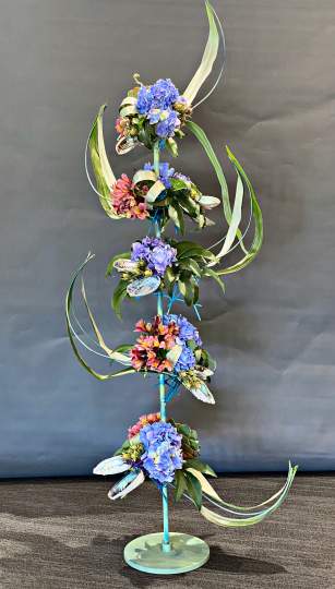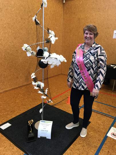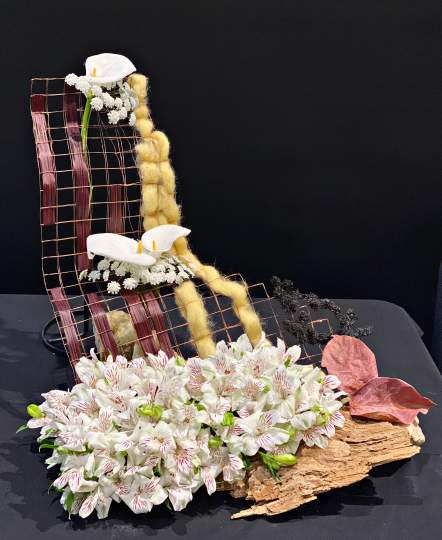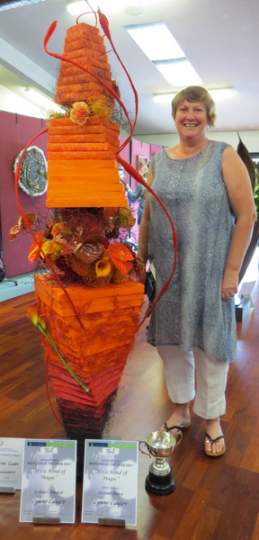 The title for the Designer of the Year was “Dare to be Different”. Lynne Causer won Designer of the Year with a stunning showpiece, benefiting from her husband’s metal work skills. All exhibitors once again excelled themselves with their innovative designs, and it was heartening to see new members taking part in competition work.