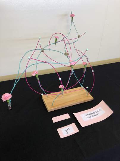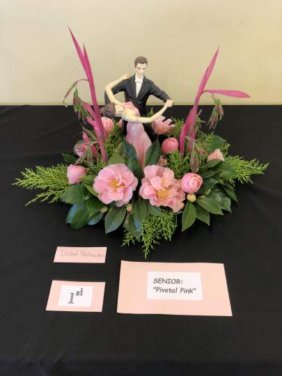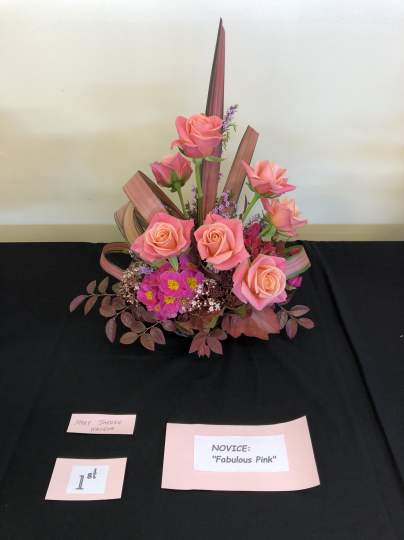 Gisborne East Coast Area held their September meeting with a new schedule format which included a freestanding floor design requirement for Club Competition. The Novice, Intermediate , and Senior sections were table top designs. The Title for the day was "In the Pink". Members were also entertained with a demonstration by Sue Jones entitled "My Passion; My Family and Floral Designing", where her designs featured various popular techniques as well as her talented granddaughters!