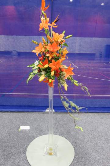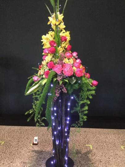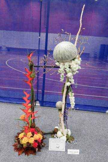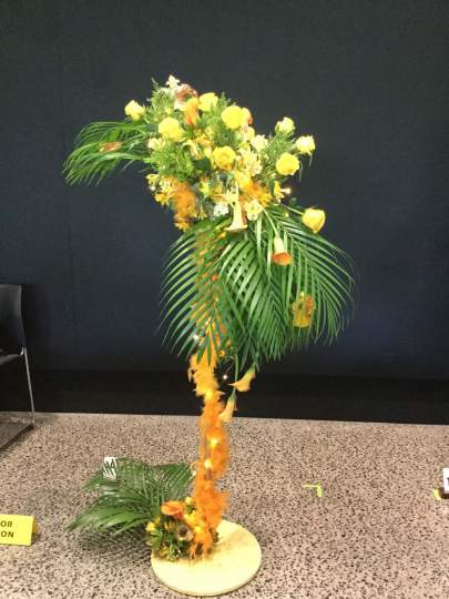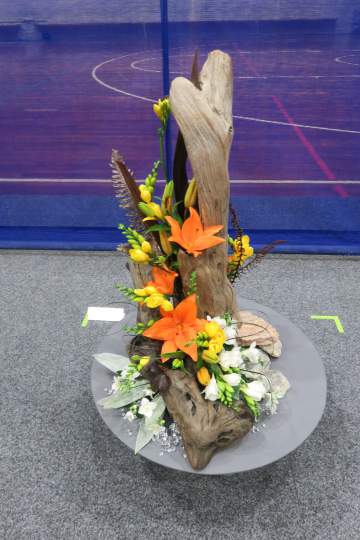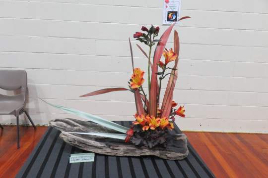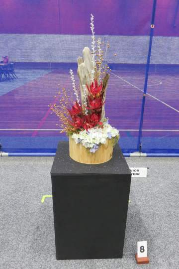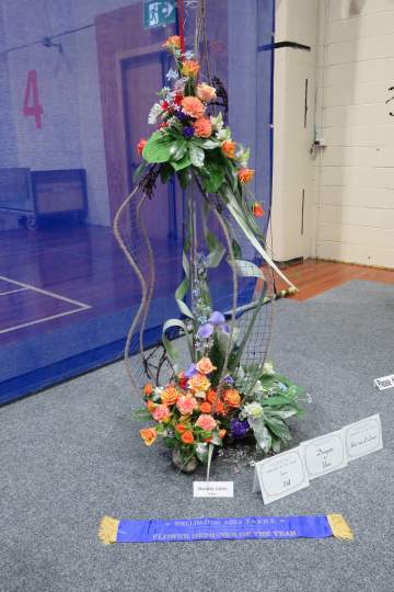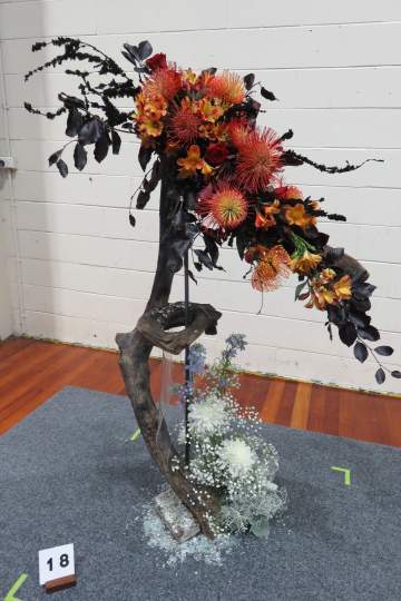 I was the Convenor with Leigh Tierney as Head Steward. We campaigned very hard and finished with 20 entrants from the six clubs in the Wellington Area: 10 Juniors and 5 each in Intermediate and Senior. The title was ‘Fire and Ice’ for each class. The Juniors did it as a tabletop to be displayed on a plinth. The Intermediates provided their own staging and the Seniors’ designs were to be from the floor.