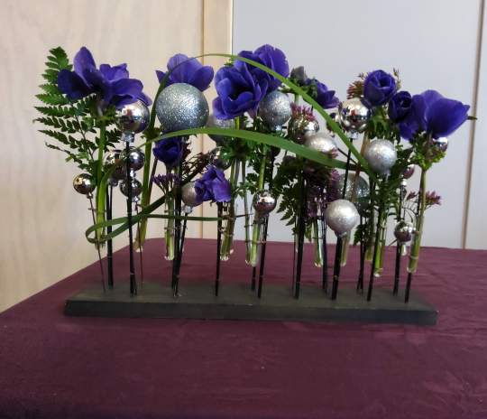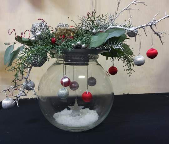 And ‘deck the hall’ the club did. It was a spectacular exhibition of traditional and contemporary festive designs, alternative ideas for Christmas trees which ranged from thirty centimetres tall to over two metres tall and a wonderful assortment of wreaths.