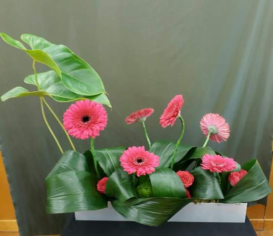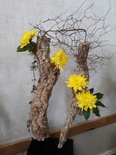 1st Novice – Fiona Williamson. A minimal design with eye catching yellow chrysanthemums to create WOW