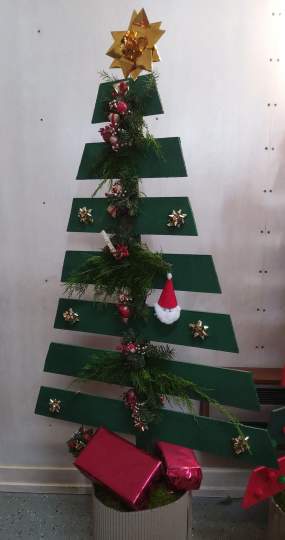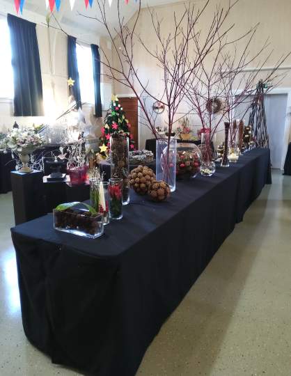 With a membership of twenty-two, all members contributed to the display with enthusiasm and vigour. On pack-in day, designs just kept coming, with the hall being decorated to the maximum with a diverse range of festive designs, lights, music, and sparkle.