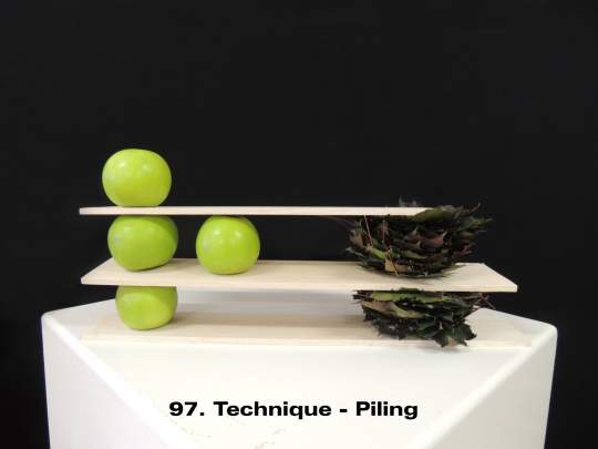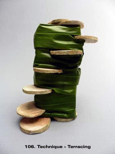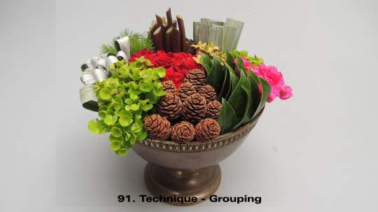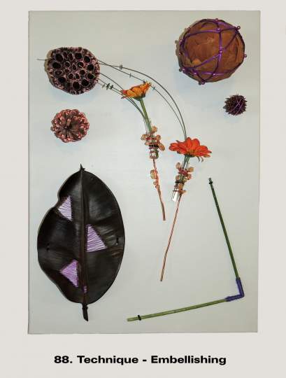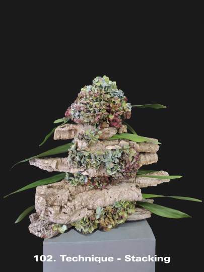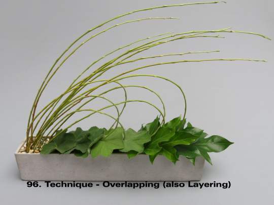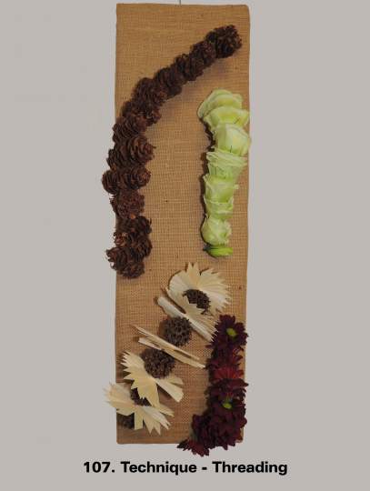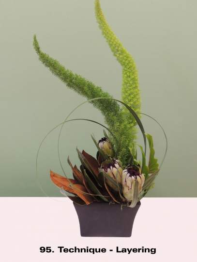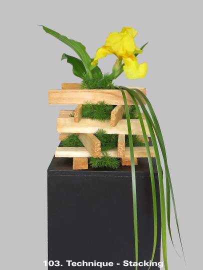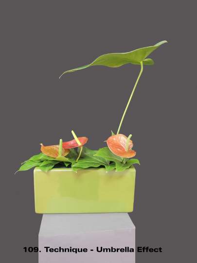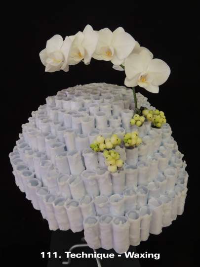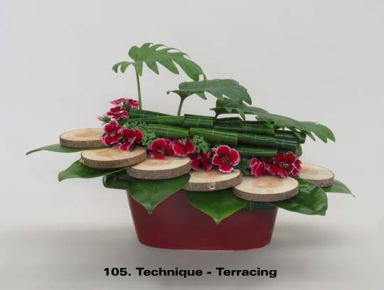 It is a term mainly used for modern/contemporary designing. Techniques are continually evolving with new ones being created by designers every year. It is one of the things that keeps floral design fresh and interesting for the contemporary floral artist. These images illustrate a few of the nearly 30 listed and defined Techniques currently recognized by the Floral Art Society of New Zealand.